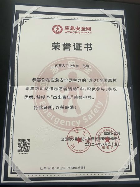 9月25日,一本記錄著路橋分公司青年員工蘇瑞愛心捐贈的榮譽證書郵寄到大運河項目部。蘇瑞向河南災(zāi)區(qū)奉獻(xiàn)愛心、捐款捐物的行動得到了“應(yīng)急安全網(wǎng)”的褒揚,他也在“2021全國高校青年防洪防汛志愿者活動”中被評為“杰出青年”榮譽稱號。