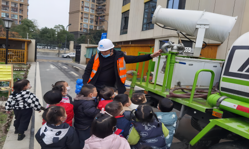 在活動中,幼兒園小朋友們在項目部管理人員的帶領下參觀了灑水車駕駛室、霧炮機、灑水噴頭等,項目負責人圍繞灑水車的功能和作用以及項目概況和目前整體進展進行詳細講解,在項目負責人的演示下,小朋友們對灑水車的功能和作用,也有了更全面的理解。隨后,幼兒園小朋友在老師的啟發(fā)下暢所欲言,并在展板上畫上了自己心目中車輛。幼兒園老師們紛紛表示,此次活動讓小朋友們深度了解工程車輛的作用和意義,小朋友們第一次近距離地參觀大型車輛,為小朋友的后續(xù)的展開想象提供了幫助。