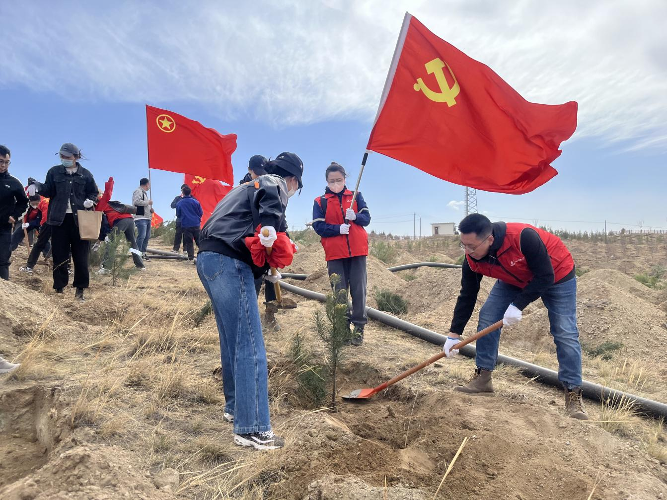 一年一度植樹日,春暖花開正當(dāng)時。4月15日,由中國二冶團(tuán)委主辦、路橋分公司團(tuán)委承辦的“植樹添綠正當(dāng)時,無負(fù)四月好春光”志愿服務(wù)公益主題活動在包頭青山區(qū)興勝鎮(zhèn)東達(dá)溝村開展,公司總部機(jī)關(guān)及在包各二級公司青年志愿者60余人參加活動,為包頭市的春天再添新綠。