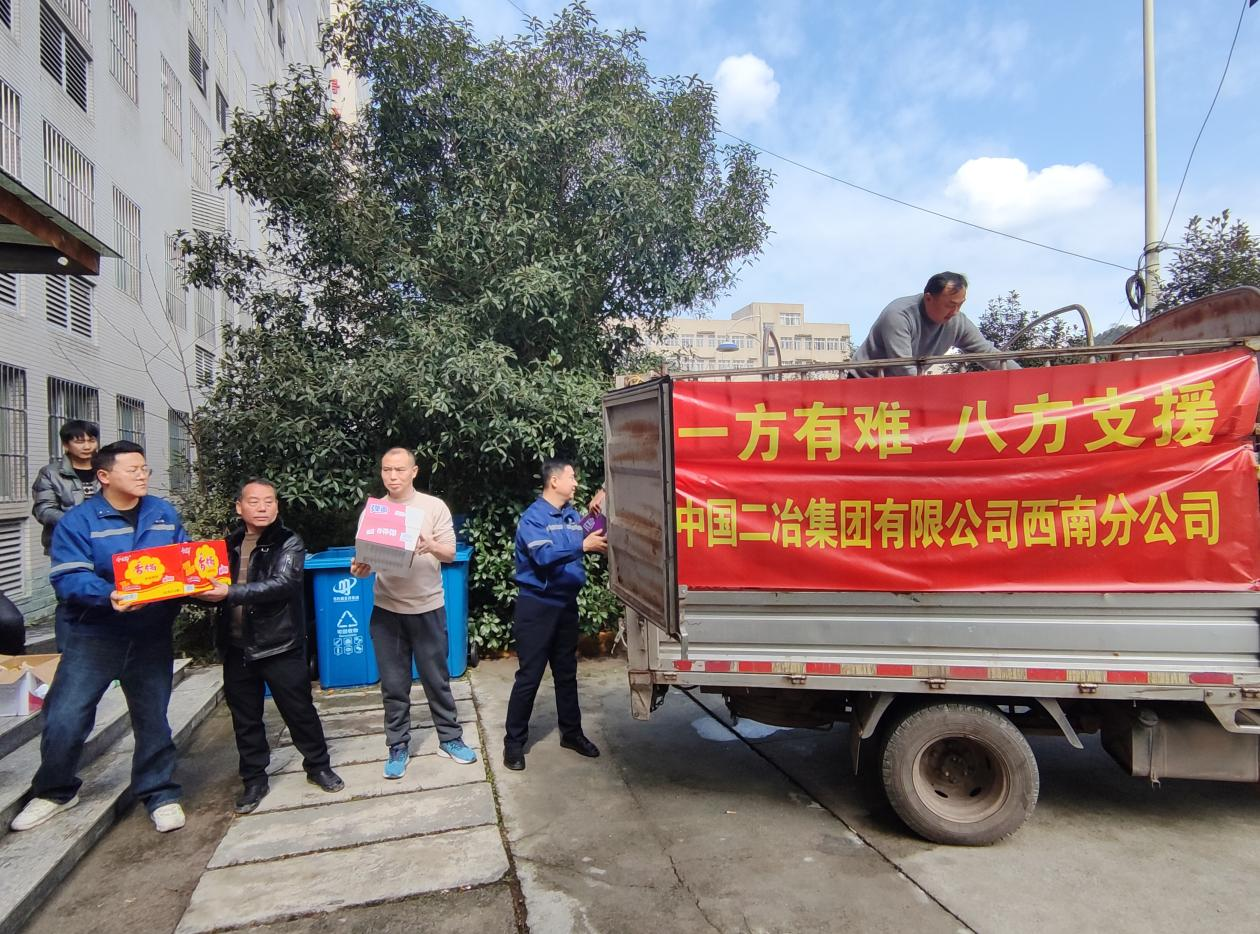 ——四川分公司宜賓二醫(yī)院項(xiàng)目為當(dāng)?shù)厥転?zāi)群眾捐贈愛心物資