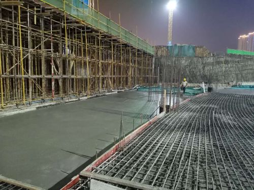 6月14日,在公司“大干二季度”勞動(dòng)競(jìng)賽活動(dòng)中,山東區(qū)域分公司承建的泰山文旅健身中心項(xiàng)目歷經(jīng)25個(gè)小時(shí)連夜奮戰(zhàn),順利完成配套用房B區(qū)筏板混凝土澆筑,累計(jì)澆筑混凝土1150m³。