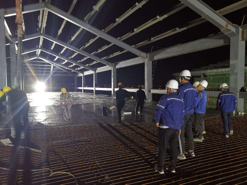 隨著國內(nèi)疫情趨穩(wěn),全國上下萬眾一心推動(dòng)復(fù)工復(fù)產(chǎn)進(jìn)入“快節(jié)奏”。城建分公司包頭高技能人才公共實(shí)訓(xùn)基地項(xiàng)目部深入貫徹落實(shí)中國二冶及分公司 “決戰(zhàn)二季度,確保雙過半”目標(biāo)要求,咬定目標(biāo),奮力前行,施工現(xiàn)場(chǎng)呈現(xiàn)大干快上的局面。目前,該工程連夜進(jìn)行了現(xiàn)代信息中心9m高樓板混凝土澆筑工作,澆筑量166m³,連續(xù)澆筑8小時(shí),于凌晨3點(diǎn)順利完成,施工面貌頻繁刷新。
