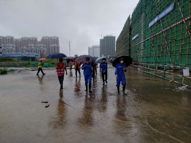 東西湖文化中心項(xiàng)目部接到預(yù)警通知后,湖北分公司高度重視此次降雨防范工作,東西湖文化中心項(xiàng)目部全體人員整裝待命隨時(shí)奔赴搶險(xiǎn)第一線。