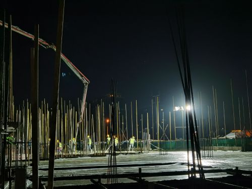 人勤春來早,實干正當時,施工現(xiàn)場整天一片熱火朝天的施工景象,穿梭的土方車輛、隆隆的挖機轟鳴聲、緊張有序的施工作業(yè)人員,挑燈夜戰(zhàn)搶工期,現(xiàn)場構成一片繁忙的施工畫面。該項目部根據(jù)實際情況,針對各施工班組制訂各階段施工節(jié)點計劃,在保證安全質量的前提下,確保按期完成建設任務,認真落實工期和產(chǎn)值目標。目前該項目售樓部主體結構全部封頂,工人每天都在披星戴月、挑燈夜戰(zhàn)加班加點搶抓二次結構砌筑、裝飾裝修工期節(jié)點,確保售樓部5月份順利交付使用,目前售樓部單日施工作業(yè)人數(shù)可達80余人;基坑支護工程也再緊鑼密鼓的施工當中,南方連日降雨,也為基坑施工作業(yè)帶來了巨大的挑戰(zhàn),作業(yè)人員整日穿著雨具“泡”在水里綁鋼筋、支模板,為了不耽誤現(xiàn)場作業(yè)人員施工業(yè),食堂將午飯送到施工現(xiàn)場,作業(yè)人員也只是簡單的應付一下后繼續(xù)投入到緊張的“戰(zhàn)斗”當中。