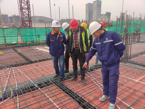 作業(yè)人員各顯身手,越是艱難越向前。即將進入五月,氣溫持續(xù)升高,整個施工現(xiàn)場機械設備轟鳴聲、金屬撞擊聲不絕于耳,建設工人們在各自崗位上辛勤勞作,用汗水書寫著平凡的責任,一個個忙碌的身影奮戰(zhàn)在熱火朝天的工地。“滋滋滋...”電焊工精細焊接著穿墻管,“湊湊湊...”工地上的蜘蛛俠們身系安全帶在幾十米處的外架上用電動扳手緊固著扣件,“吊物捆綁好了嗎?收到、好的”塔吊司機用修長堅實的臂膀輸送著材料,“嗡嗡嗡、咚咚咚...”木匠們操作著圓盤鋸、揮舞著鐵錘支設出規(guī)矩平整的板面,...他們默默戰(zhàn)斗在現(xiàn)場的每一個角落、完成每一道專業(yè)性極強的工序,或服務于集體,或敬畏于職責。