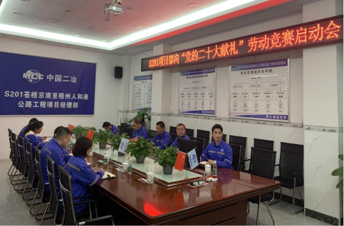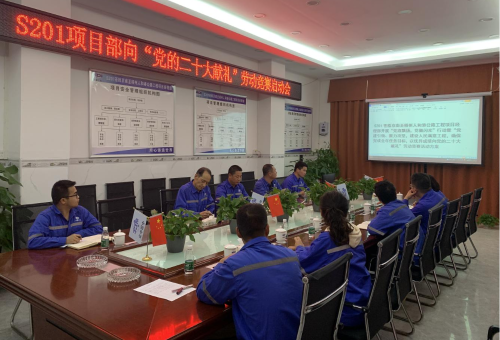 為確保完成2022年任務(wù)目標,為黨的二十大獻禮,S201項目部于2022年3月11日組織召開了“黨旗飄揚、黨徽閃光”行動暨“黨建引領(lǐng)、聚力攻堅,建設(shè)人民滿意工程,確保完成全年任務(wù)目標,以優(yōu)異成績向黨的二十大獻禮”競賽啟動會。